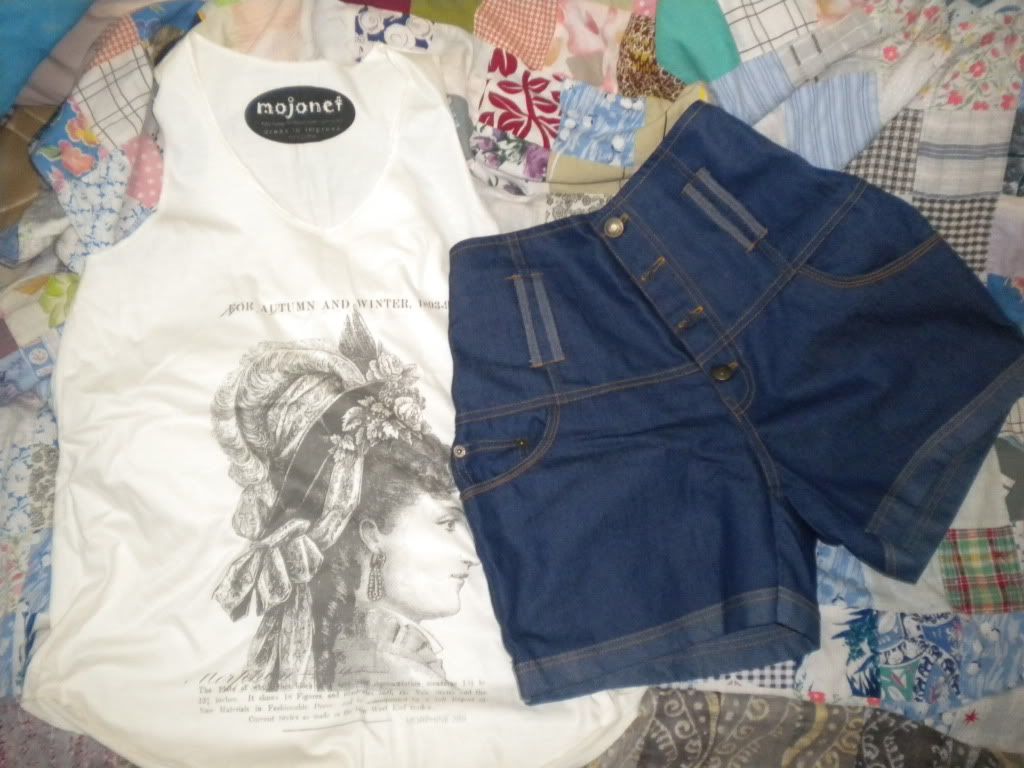 sad thing is i didn't brought any bag, all the bag that i want was so expensive, so i brought 2 shirt and one high waist pant, 1 sandals and one shoes .